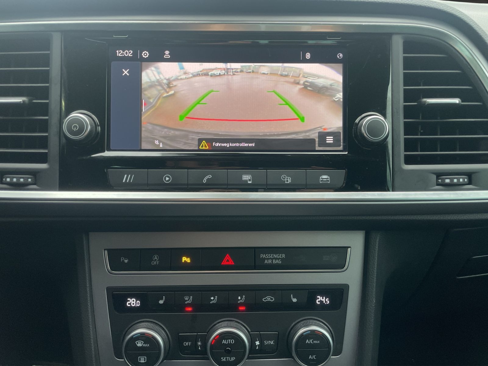 Fahrzeugdetails + Ausstattung Klimaautomatik Metallic Garantie inkl. Leichtmetallfelgen ESP ABS Wegfahrsperre Zentralverriegelung Elekt. Fensterheber Anzahl Türen: 5 Servolenkung Hubraum: 1498 Sitze: 5 Schadstoffklasse: EURO 6 Tempomat Sitzheizung Partikelfilter Einparkhilfe Herstellerschlüsselnummer: 7593 Typschlüsselnummer: AOB Interieurfarbe: Schwarz Interieurtyp: Stoff Vorder-, Seiten- und weitere Airbags Vorbesitzer: 1 SUPER elek. Seitenspiegel Sportpaket Bluetooth Bordcomputer Freisprecheinrichtung Multifunktionslenkrad Skisack Kindersitzbefestigung Lichtsensor Nebelscheinwerfer Tagfahrlicht Traktionskontrolle Start-Stop-Automatik Regensensor Nichtraucher-Fahrzeug Dachreling Fahrtauglich Einparkhilfe: Sensoren vorne Einparkhilfe: Sensoren hinten Einparkhilfe: Kamera Einparkhilfe: Selbstlenkendes System Ambientes Licht Winterpaket Sommerreifen Gepäckraumabtrennung Beheizbares Lenkrad Innenspiegel automatisch abblenden LED-Scheinwerfer Notbremsassistent Mittelarmlehne Berganfahrassistent Radio DAB+ LED-Tagfahrlicht Lederlenkrad Lordosenstütze Müdigkeitswarnsystem Notrufsystem Reifendruckkontrollsystem Touchscreen USB Schlüßellose Zentralsverriegelung Klimaautomatik 2-Zonen ehem. UVP: 34635.87 Ausstattungslinie: FR Detail Schadstoffklasse: EURO6D Lagerplatz: SAW Modellbasis: Ateca 1.5 TSI FR 150 PS RFK/SHZ/GRA Leergewicht: 1400 kg
